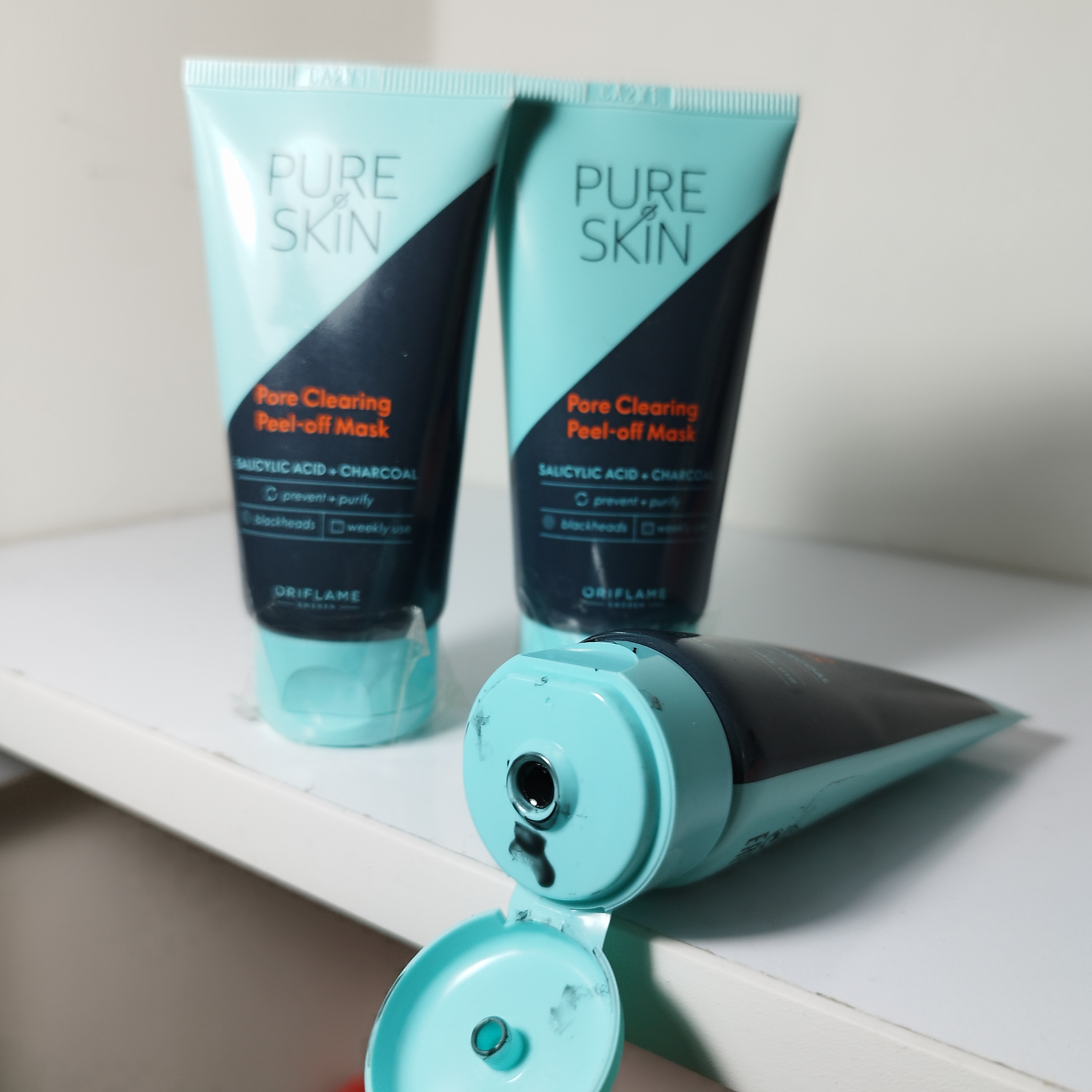 ماسک ذغال پیور اسکین اوریفلیم حاوی پودر ذغال سیاه با خاصیت پاک کنندگی قوی برای حذف سلولهای مرده و چربی های اضافه پوست